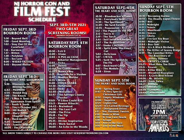Halloween starts early in New Jersey. The Showboat Hotel in Atlantic City will be hosting the New Jersey Horror Convention Film Festival Sept 3 -5.